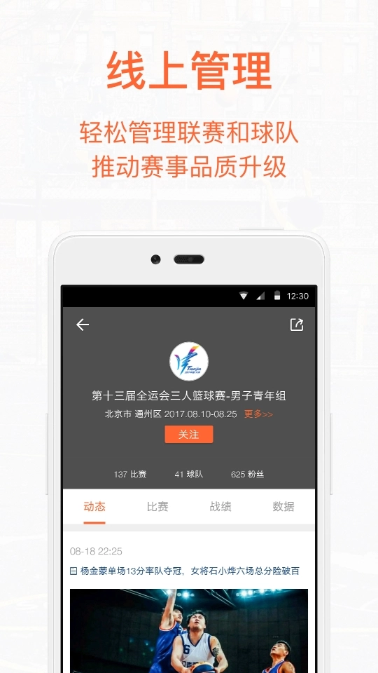 数据统计:手动/自动记录比赛数据,生成个人或团队报告(场均得分、命中率等)。