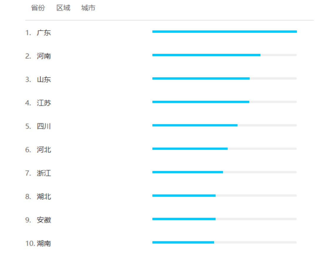 (TapTap用户地域分布情况,可以看出其用户多分布于广东、山东等沿海省份)