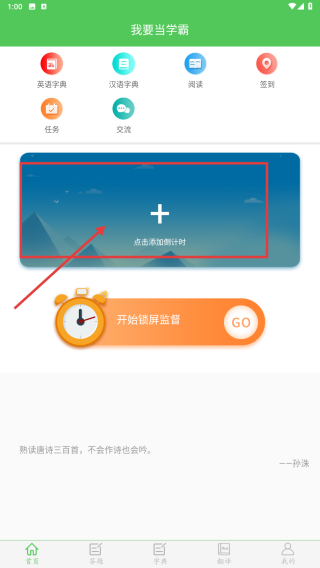 1、进入首页,点击点击添加倒计时,创建学习待办,设置任务与时间提醒,点击添加。