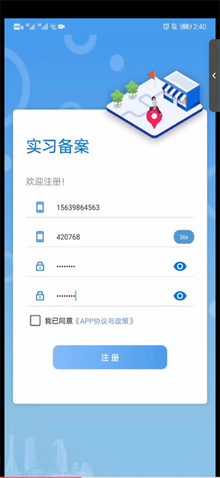 2、根据提示输入自己的手机号、验证码、密码,并同意协议,点击立即注册;