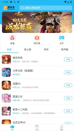 3. 平台内的游戏资源主要是h5游戏,不仅种类丰富多样,每天还会上线不少新游戏,并且所有游戏均为正品,用户可以领取到包含游戏货币在内的福利。