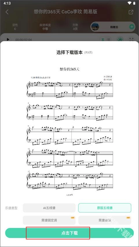 1、打开应用后进入【发现】界面,在界面上方挑选你心仪的曲谱,点击进入其详情页面。