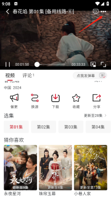 打开想要观看的影视内容后,轻点屏幕中间区域,接着点击右上角的三点图标。