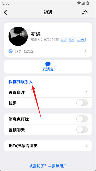 5、完成身份确认后,点击【保存到联系人】按钮,就能顺利添加好友,进而开启聊天互动。