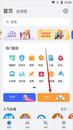 进入应用商店—选择tab应用—点击右上角快应用,进入快应用中心首页。
