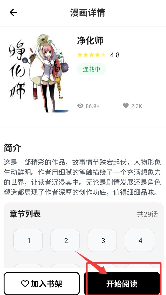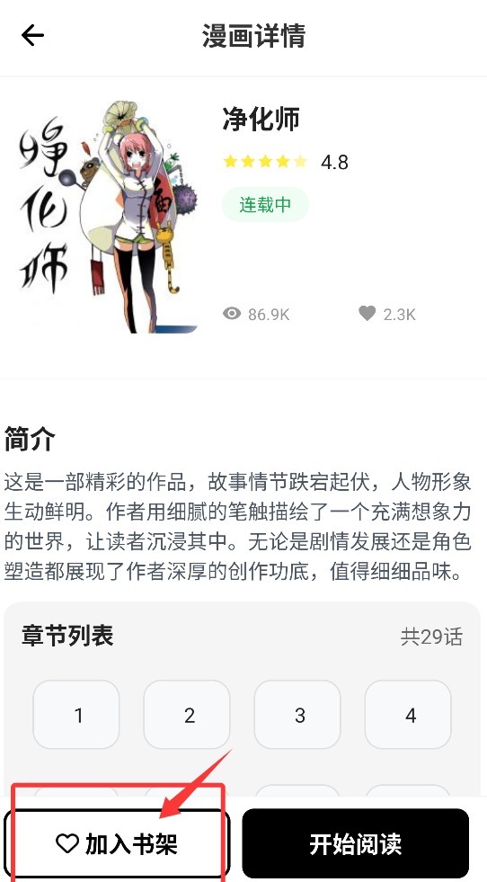 1、打开皮皮喵动漫乐园后,您可通过加入书架功能收藏感兴趣的漫画作品,便于后续统一管理。