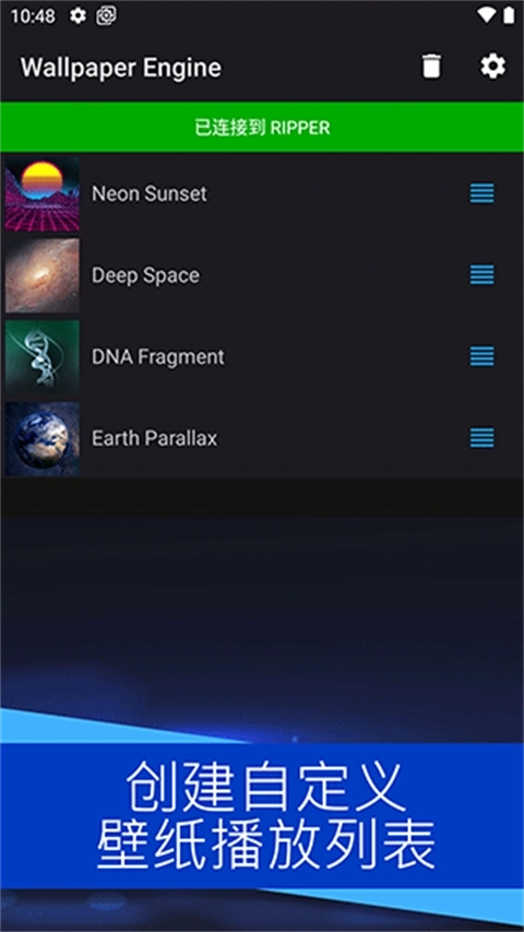 《壁纸引擎》手机版是一款功能强大的动态壁纸应用,为用户提供丰富多样的动态壁纸资源,支持高清视频、3D 动画和自定义壁纸。用户可以轻松设置个性化的桌面和锁屏壁纸,让手机屏幕更具活力和创意。其简洁的界面和强大的自定义功能,满足不同用户的需求,无论是追求视觉效果还是个性化体验,都能在这款应用中找到乐趣。
