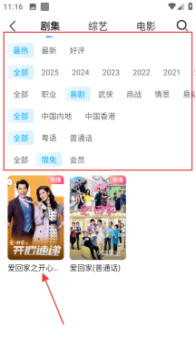 2、在片库的剧集分类下,筛选出喜欢的剧集,比如爱回家之开心速递点击进入。