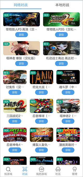 2、对战模块,这里拥有网游、单机类型的游戏;