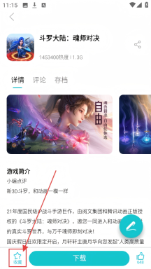 3、进入《斗罗大陆:魂师对决》的详情页面后,找到左下角的【收藏】按钮,点击它就可以将这款游戏添加到收藏列表中了。