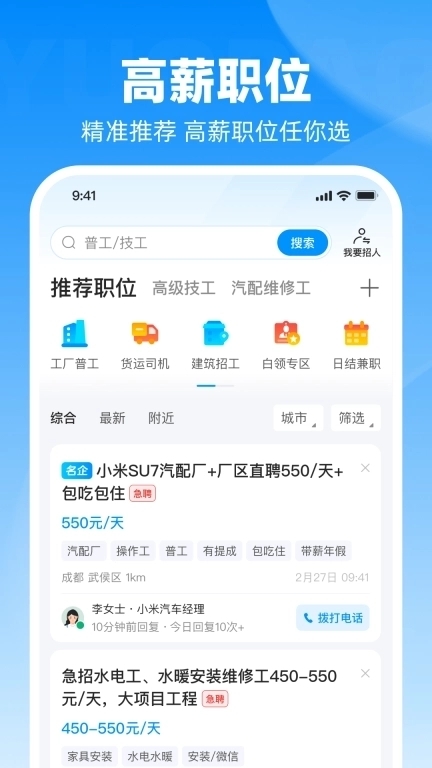 鱼泡直聘app是一个专注于为求职者和企业搭建高效沟通渠道的招聘求职平台。它为求职者提供多样的职位机会,为企业输送优质的人才储备。平台覆盖建筑装修、工厂制造、物流运输、生活服务等多个行业领域,服务范围遍及全国600多座城市。借助实时在线招聘功能,求职者与企业可以快速达成匹配,实现高效沟通与精准对接,显著提升了招聘和求职的效率。