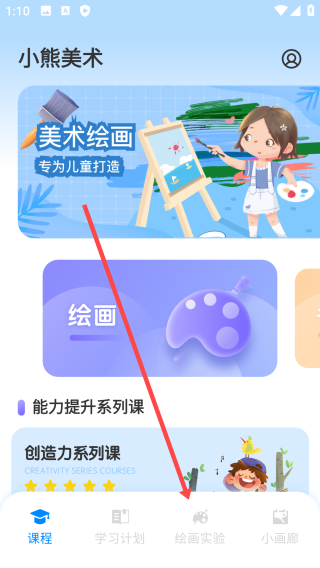 1、打开全能画图板app,点击【绘画实验】