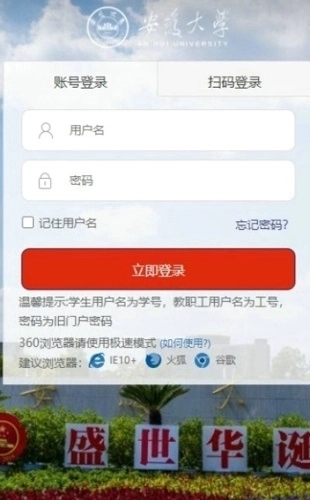 统一身份认证登录方式 访问智慧安大官方网站(通常为http://zhah.ahu.edu.cn或学校主页跳转),在登录页面输入学号(学生)或工号(教职工)作为用户名,初始密码一般为身份证后六位或学工号后六位。首次登录后系统会强制要求修改初始密码并绑定手机号,请按提示完成安全验证。登录成功后即可进入个人工作台,查看各类校园服务。