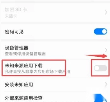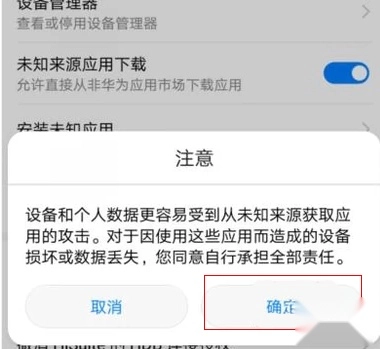 4、在弹出的更多安全设置界面,将未知来源应用选项处于开启状态。