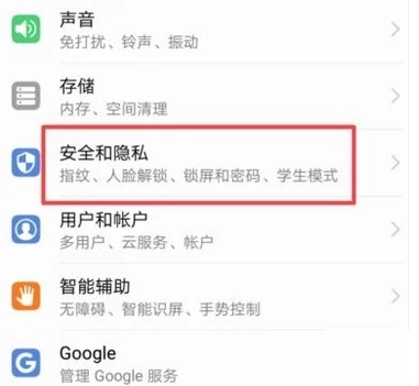 2、进入设置列表菜单,点击安全和隐私选项进入。