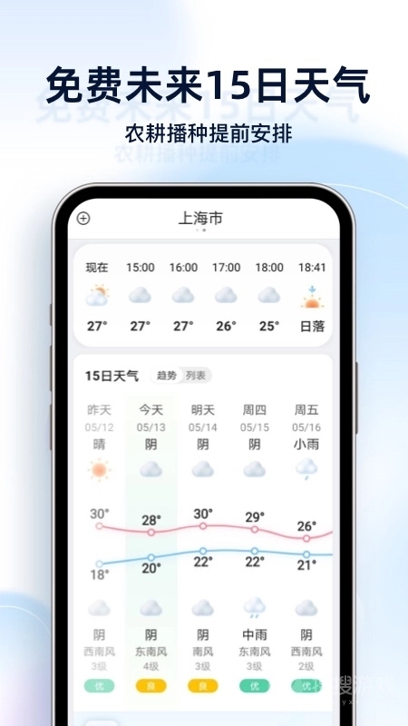 天气预报星最新版是一款功能强大的天气应用,能为您提供本地及全球各地的精准天气信息。它的界面简洁直观,用户可以轻松查看当前天气状况、未来几天的预报,以及温度、湿度、风速、降雨概率等详细气象数据。只需提前设置位置,应用就会自动更新并推送所在地区的实时天气,让您随时掌握天气变化,做好出行准备。无论日常出行还是旅游规划,天气预报星都是您不可或缺的贴心助手。
