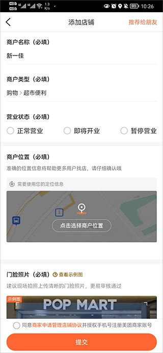 4、若搜索不到店铺可以点击添加店铺。然后上传店铺资料后点击提交