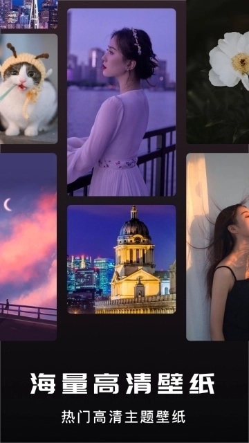 1、多种风格的壁纸素材任你挑选,一键即可预览并设置,还能轻松分享;