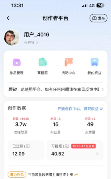 4. 平台针对优质创作者推出流量扶持、奖金激励等举措,帮助创作者实现内容变现。