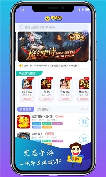 首页推荐:展示编辑精选、热门游戏、最新上架、限时活动等内容,帮助用户快速发现好游戏。