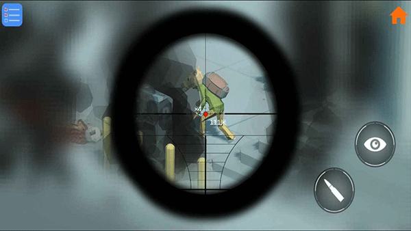 1、点击瞄准镜,即可瞄准对面的敌人,点击右侧的人即可进行躲避。
