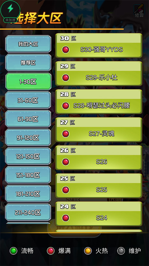 1、玩家进入游戏中先选择服务器区,可以查看合适的服务器火爆程度进行选择