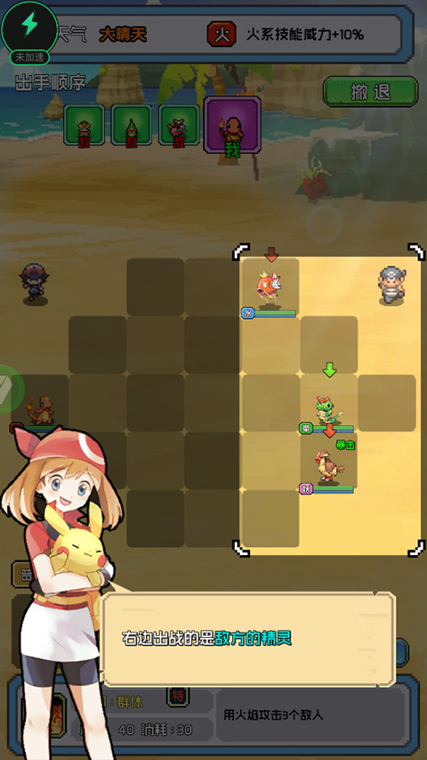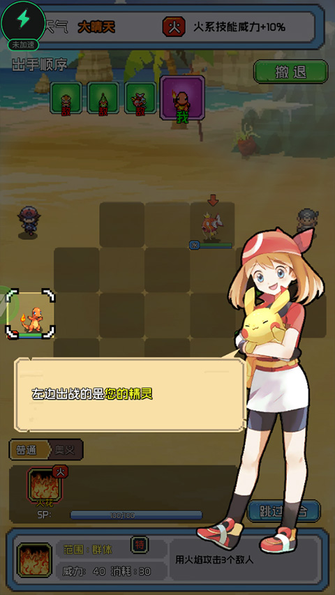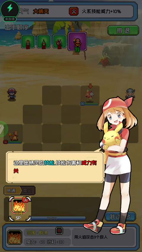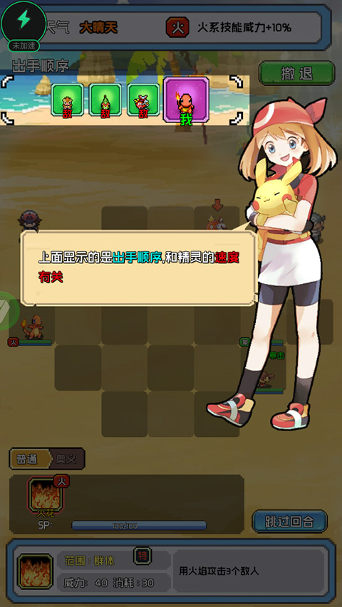 8、游戏界面上方显示的是出手顺序,以及精灵的速度相关