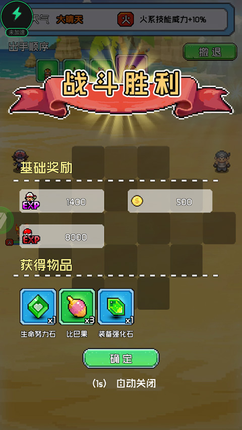 5、训练师们踏上城镇之旅,开启激情冒险,解锁关都地区、城都地区、丰源地区等多种地图。挑战BOSS,畅快通关,领略战斗的美妙。在此过程中,既能赚取金币、领取道具,还有机会掉落稀有精灵碎片。