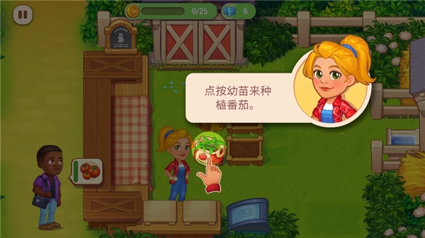5、点击顾客的气泡框,就能交给顾客啦,之后不断种植然后交易,当赚到25个金币的话,即可通过第一关卡;