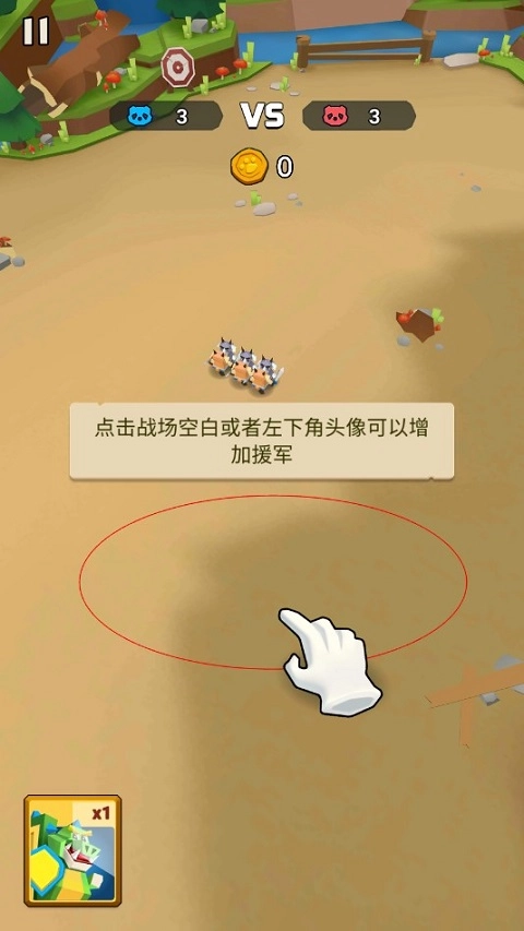 3、点击战场空白或者左下角头像可以增加援军。暖军的增援是扭转战局的关键,要合理运用。