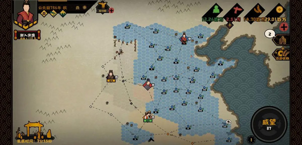 接下来玩家就得看地图行事了,轩辕是十分重要的角色,同时九黎和东夷后期很难打得过。这三个作为三皇五帝的首发种族,彼此距离十分的近,所以小编推荐玩家选择最后一个,玩家可以选择在灭掉一个的同时转方向去共计另一个,击破两个后玩家就可以很舒服的征战下面的了。