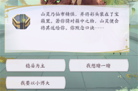 其中道友可选择稳定保底收益,赌一赌或以小博大三种鉴定方式。