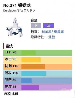 铝钢龙是本作最强的宝可梦,自身不仅拥有钢属性和龙属性可以克制大部分的属性攻击,还拥有高额的属性(85的速度、95的血量、120的特攻、115的防御),因此能够力压群雄,位居榜首。