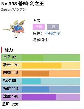 苍响是本作中唯一拥有妖精和钢的特性的宝可梦,它不仅属性高(170的攻击、148的速度、115的防御和特防),而且顶级宝可梦应该有的技能配置它都有,大家感兴趣的话,还是十分值得培养它的哦。