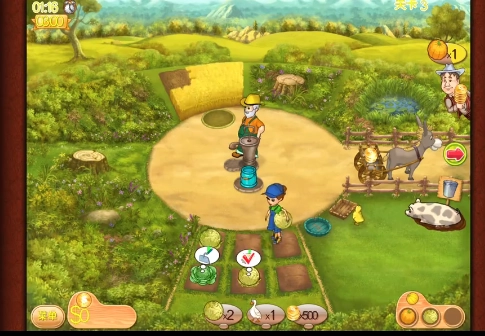 游戏包括60个关卡以及找东西的奖励关卡,每个关卡都有特定的任务目标,如在规定时间内收获一定数量的作物、生产特定的商品等。玩家需合理策划先后顺序,尽快完成任务,剩余时间将变成金钱奖励。