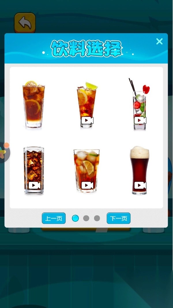 1. 来到饮料选择页面,挑选心仪的饮品,通过观看视频解锁制作方式,随后启动喝饮料的流程。