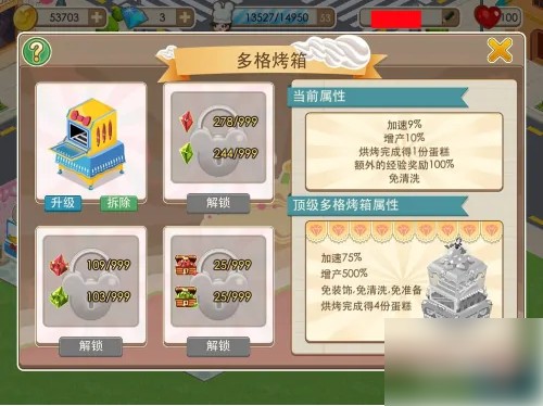 当然,除了提高头衔,我们还能通过升级烤箱来缩短烹饪时长。如此,将两者结合,我们既能做出高档的蛋糕,又能减少制作时间。这样我们的利润必然会大幅增长!