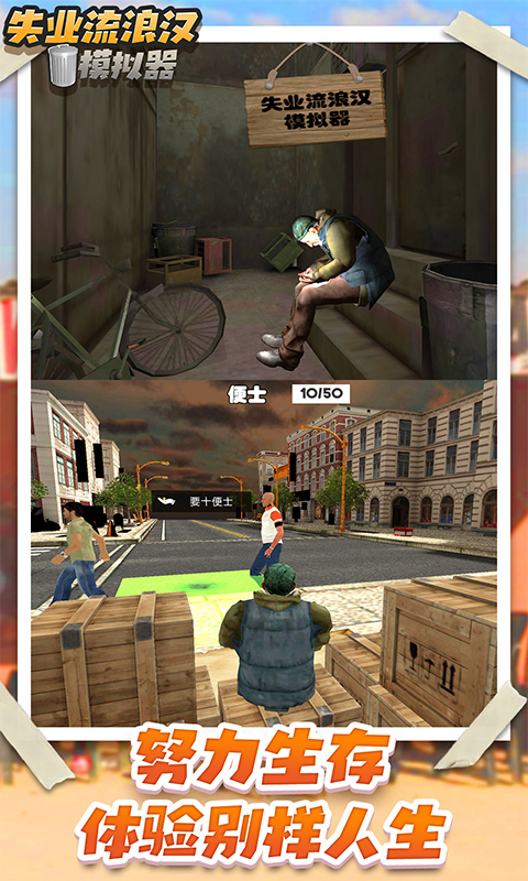 乞丐模拟器游戏中玩家会化身为可怜的乞丐,你身无分文,但是你需要努力活下来。