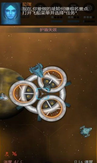 状态:护盾处于离线状态,遭受攻击后,护盾值归零,攻击直接作用于舰体,右下角白色护盾条变为灰色。护盾重新上线需较长时间,在恢复之前,护盾值无法起到防护作用。