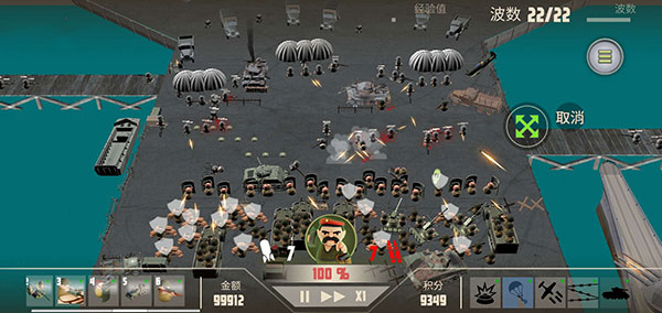 当前游戏包含数十种级别,设有4种被动技能与5种主动技能。每一轮,玩家都能够挑选不同的部队类型。随着游戏进程的逐步推进,还会解锁各类不同的升级道具。同时,玩家还能依据战争形势来进行排兵布阵。