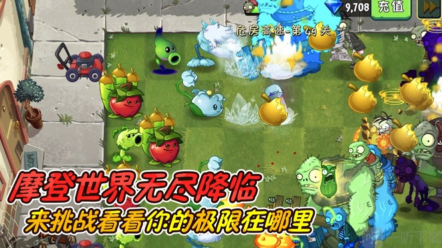植物大战僵尸2高清版是一款极具经典情怀的游戏。在游戏里,玩家得凭借自身智慧,思索应对众多僵尸的办法。每通过一个关卡,玩家就能获得新的植物。要知道,阳光可是必不可少的。而且不同的植物对应着不同的僵尸。喜爱这类游戏的玩家,快来试试吧.