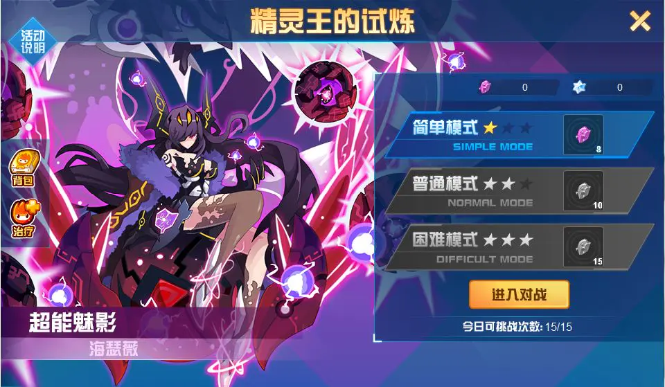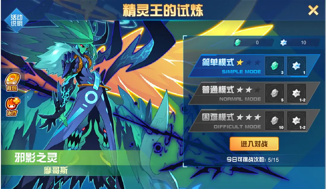 精灵王的试炼里虽然有18位精灵王,但只要我们有王之哈莫、幻境界皇、艾欧丽娅和索比斯,基本都能轻松通过。不过有些精灵王因为特性的缘故,得用针对性的方法来应对。比如超能系的海瑟薇,选光系精灵就能克制它;电系的格劳瑞,可以用圣灵谱尼来对抗它等等。要注意的是,精灵王试炼每天最多能挑战15次,我们得好好利用这些次数,用最划算的方式收集晶石。部分精灵王的困难模式难度不低,要是没太大把握通关,也可以多试试简单和普通模式哦~