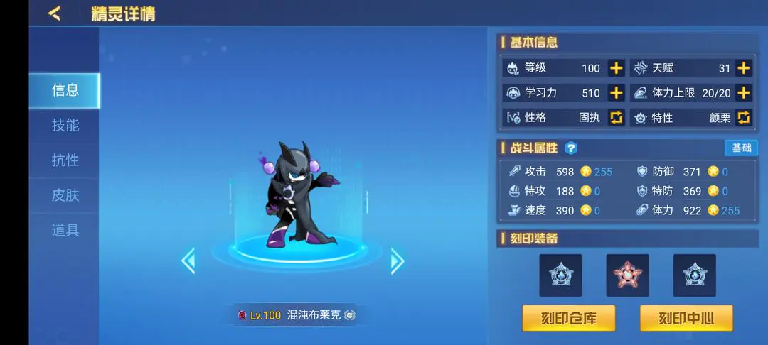 混沌布莱克算是老牌平民战神,和禁灭魔神一样,也是我平时常用的精灵。它操作起来比较简单,对应的攻略也不算复杂——不过抽到“挑战混沌”关卡的玩家真的挺非的,建议淘米策划赶紧优化下这个挑战机制。刷法上可以选择攻体或者爆攻,打裂空沧海(裂黄)的时候,对方通常起手开弹伤,这时候布莱克后手断回合就能拿到盔;它的技能输出高,容易打害怕控,敌方用属性技能时我方还能免疫一次控制,断回合也能免疫一次伤害。 不过它比较怕消强控场的精灵,比如项羽和艾夏拉,要是身上没次免和免控,很容易直接白给。特性方面,疲惫特性可以针对天尊的睡眠,睡眠特性能应对艾夏拉;项羽的消强控场是70%概率,容易歪,而且本身比较冷门,影响不算大。另外混沌布莱克有两条命,不怕机盖,直接对着输出就行。技能石推荐神秘、自然地面:神秘石能打星皇,自然地面石针对火王。打竞技里的火王时,对方抗性一般是害怕,要是火王刚切出来的回合,布莱克没能靠高伤害打出害怕,基本就得切走了。特性还可以考虑强袭毒特性。