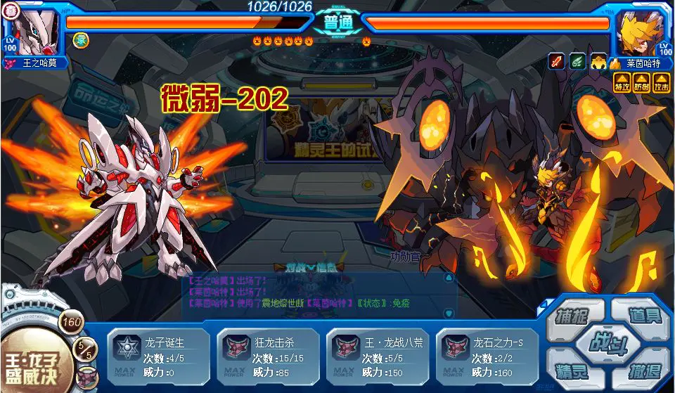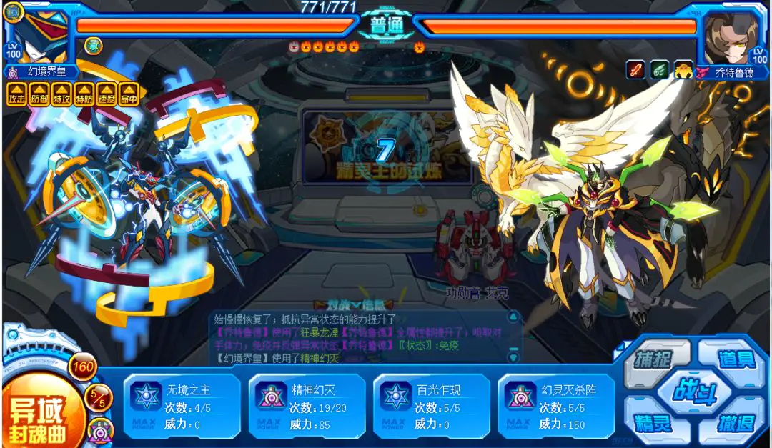 需要注意的是,当面对的精灵王强化效果过多且等级较高的情况下,我们要适当使用消强技能“狂龙击杀”将精灵王的增益效果消除。这样可以保证我们在使用第五技能时,能够打出输出最大化的效果,且避免我们在使用完自身技能时都无法击败对手,甚至被击退导致挑战失败的情况出现。