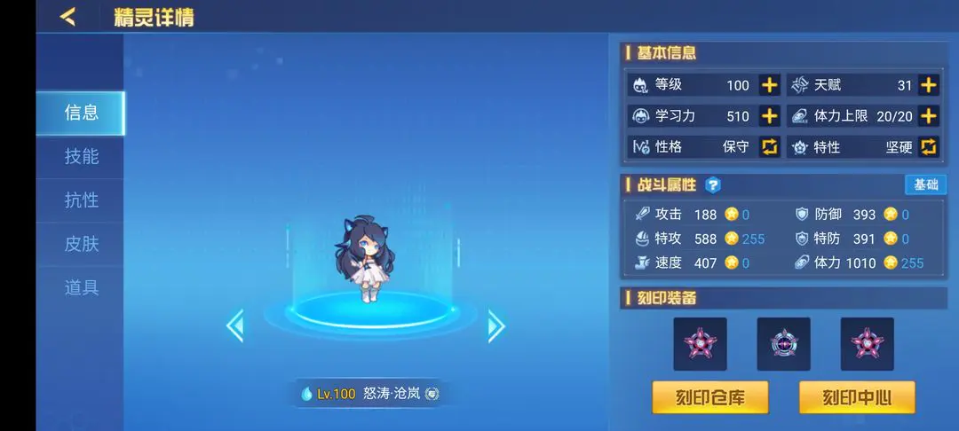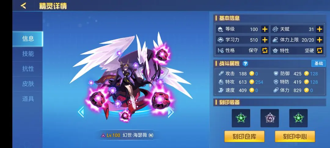 2020年巅峰获取精灵之一,塞娅,属性电暗影对于次元暗影及相关属性拥有较强的压制性,但是由于本身的机制容易被圣甲盖亚直接弹飞,但是作为去年一个获取没什么门槛的精灵,玩一玩还算不错,刷法推荐:攻速,特性推荐:精神,毒特性。