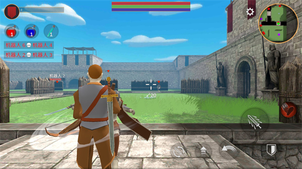 4、当敌人距离我们较远时,我们可以点击下方的箭头切换弩弓进行攻击。