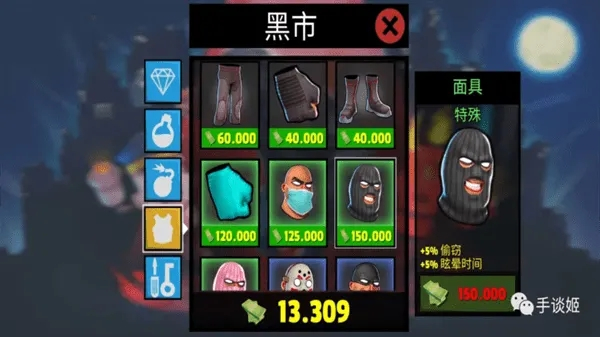 4. 丰富的升级机制:游戏内配备了完善的升级体系,玩家能够利用盗窃获取的资金来强化自身的装备与技能。各类装备和技能能够助力玩家更顺利地完成盗窃任务,从而优化游戏体验。