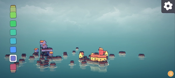2、点击右上角的齿轮图标进入设置界面,选择新建选项后,玩家就能在水面区域建造房屋了。