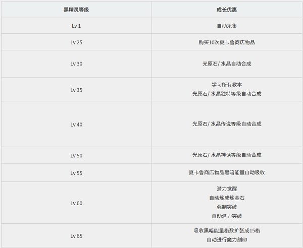 随着黑精灵等级的提升,像光原石自动合成、自动突破以及自动采集这类耗时较长的事情,都可以交由黑精灵来代为处理啦!
