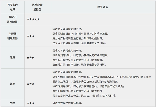 可以通过吸收装备、饰品、文物等物品来获取所需的经验值,而凝聚的黑暗能量是黑精灵专属的成长道具,能够提供大量的经验值。